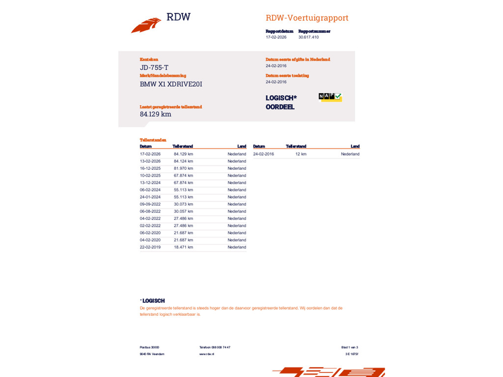 Km stand 84.129 km |