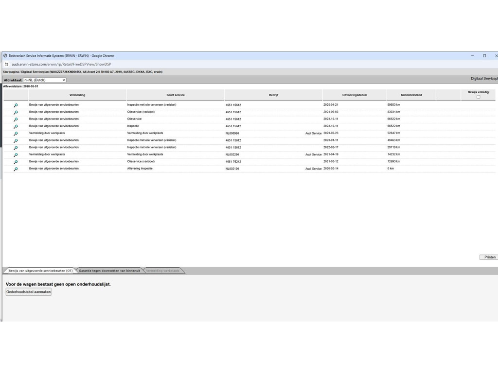 onderhoudshistorie