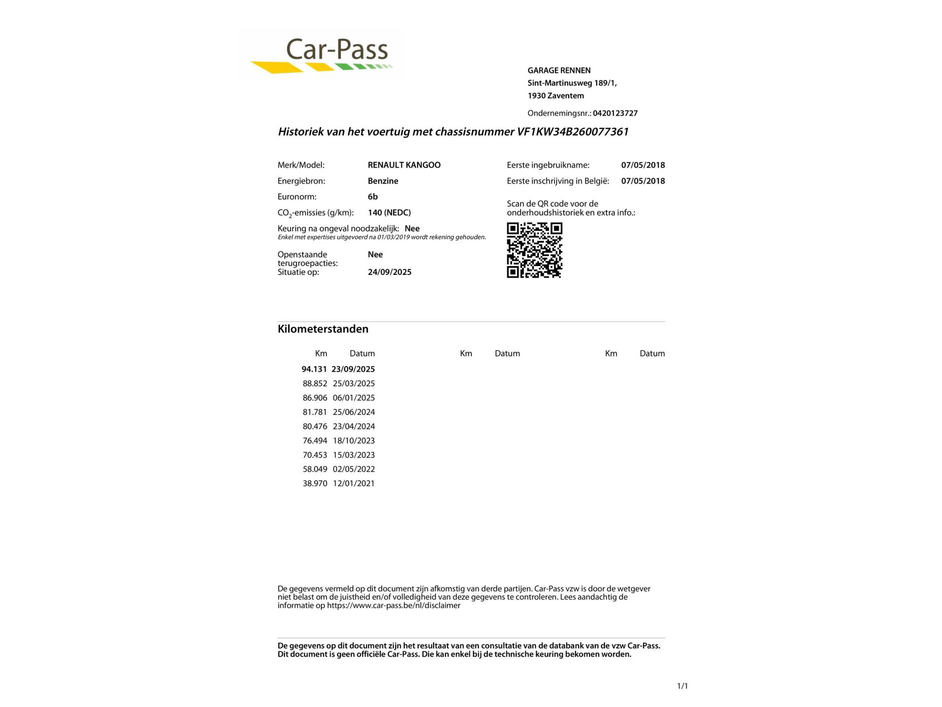Km stand 94.148 km |