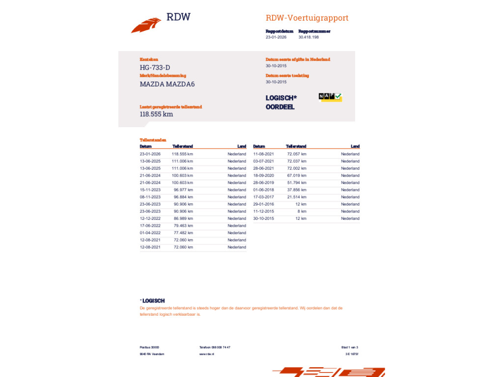 Km stand 118.555 km |